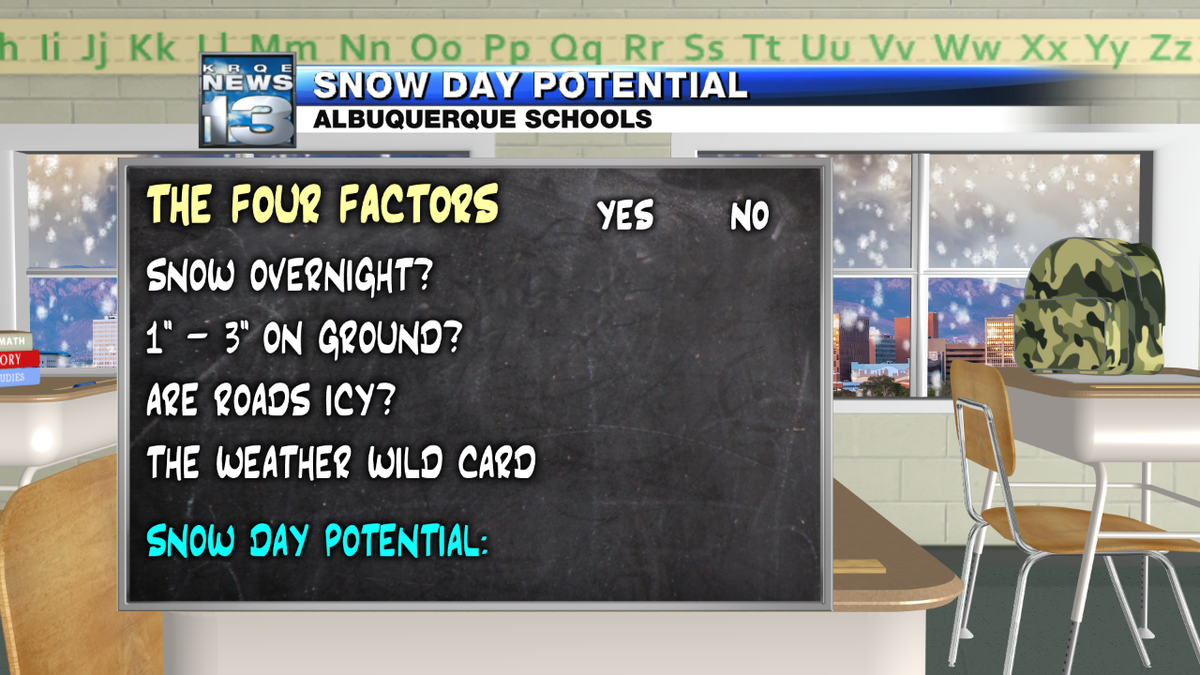 Tonight we wade into sketchy broadcast territory to predict the % chance of an @abqschools snowday. #nmwx #snowdaypic.twitter.com/UE0GlJjb5z