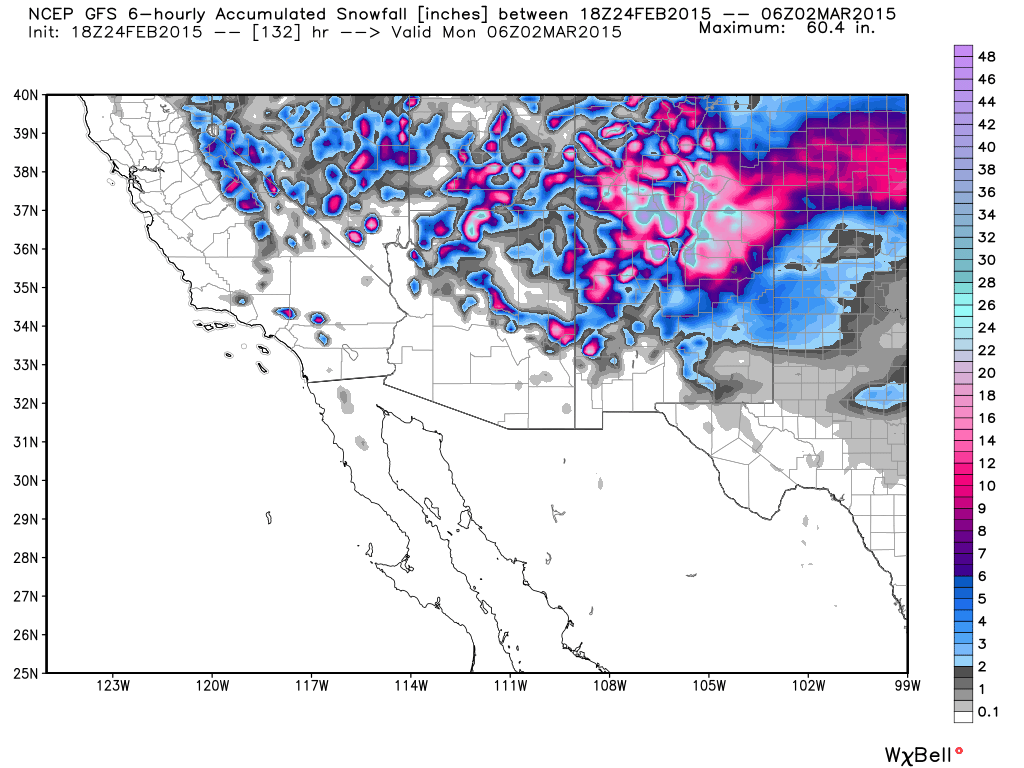 Snow pack salvation! We are looking at a very snowy pattern 24"+ more by Mon. Snow next week too! #nmwxpic.twitter.com/OFfyPyHrlF
