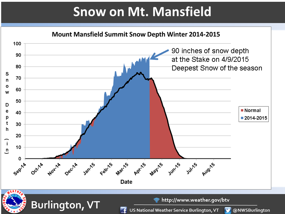 Long Live Winter? On Mt. Mansfield, VT there was 90 inches at the snow stake. Deepest snow of season. pic.twitter.com/5JwMIIaip0
