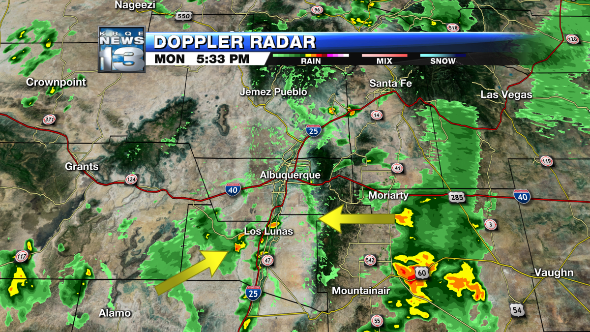 Storms over Valencia County are about to hit a gust front rolling off east mtns. Storms should expand in #ABQ. #nmwxpic.twitter.com/SZLhRLlrr6
