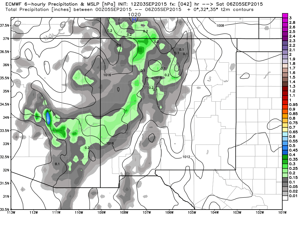 Nice combo of southerly moisture and small weather disturbances provide good storm chances through Sat. #nmwxpic.twitter.com/MYLM86tagg