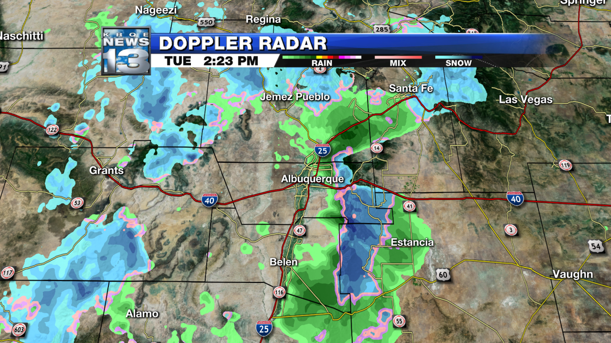 Two things happening in #ABQ metro now. Some downslope drying off mesa into city & snow 7K & Above east mtns. #nmwxpic.twitter.com/nUN9ALWoQB