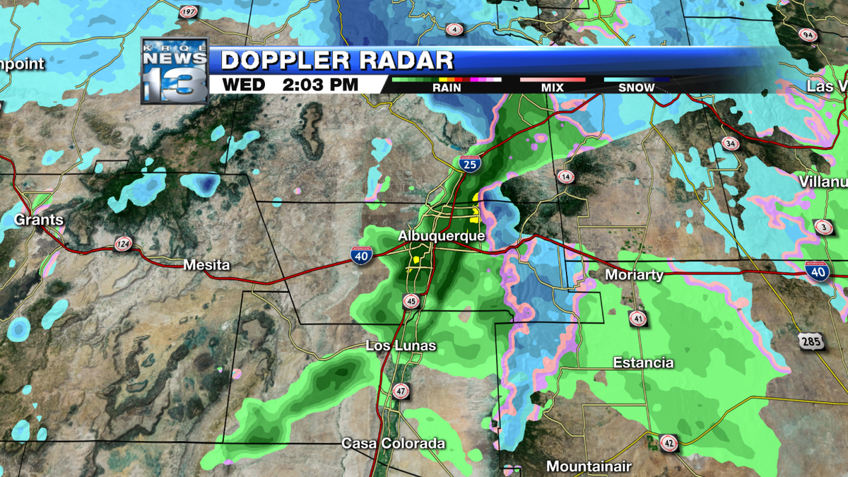 Band of steady rain and snow over #ABQ. Stronger storms still poised to hammer #NM Thu night. #nmwxpic.twitter.com/fGYJ1NPYcW
