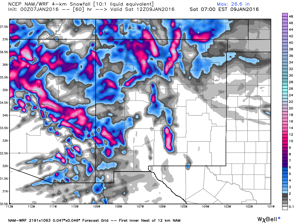 The tale of two models. NAM on left has huge #snow numbers thru Sat. Likely a little overdone. GFS less bullish.pic.twitter.com/0aCeItTbAp