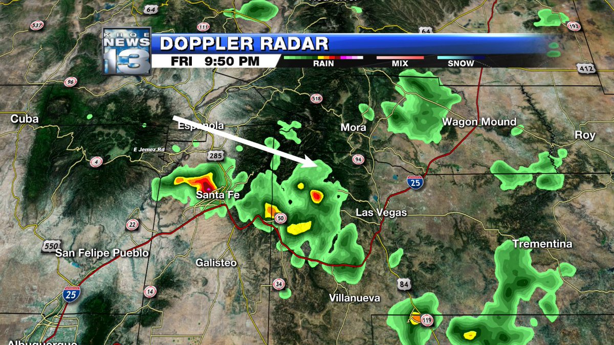 Storm heading into #SantaFe now. Heavy rain and lightning are the main threats. #nmwxpic.twitter.com/4wMpgSHT35