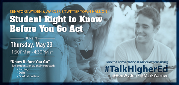 Use #TalkHigherEd to join @RonWyden & I TODAY @ 4:30pm on our bill to help students make informed #HigherEd choicespic.twitter.com/ZImdMcz5dg