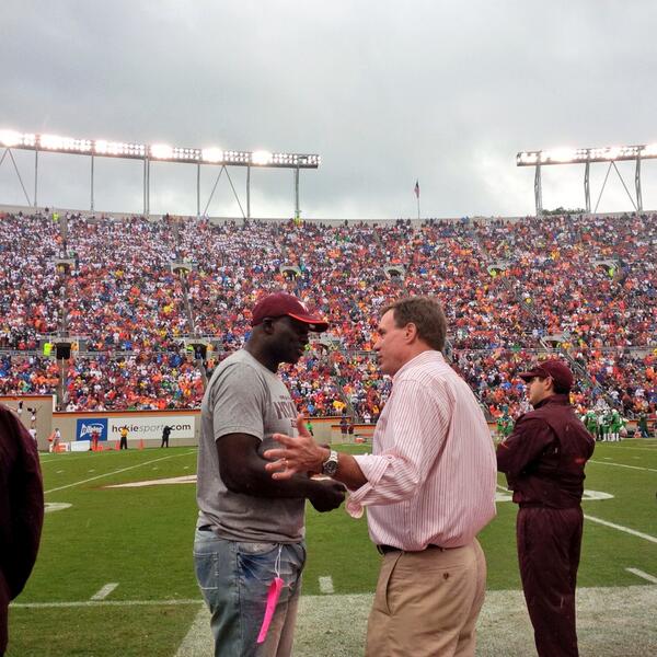 @MarkWarner Never know who you'll run into on the#Hokies sideline: NFL great Bruce Smith pic.twitter.com/ffWCK6V5VR" Go Hokies!