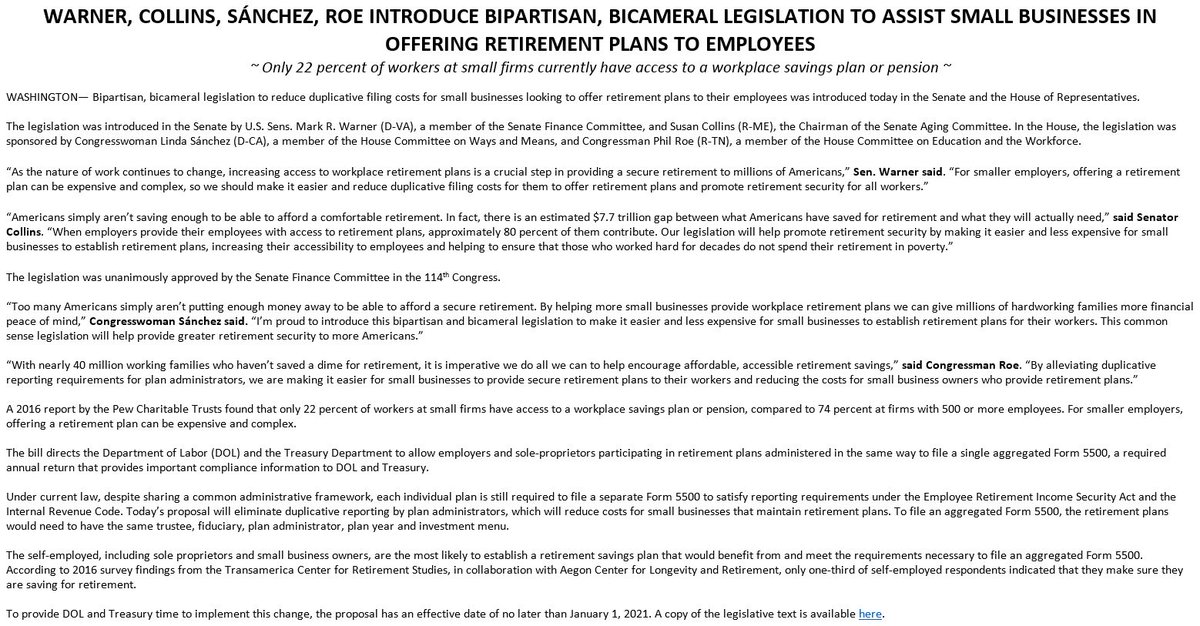 - SMALL BIZ CAN'T AFFORD RETIREMENT OPTIONS. ACA IS KILLING SMALL BUSINESS.