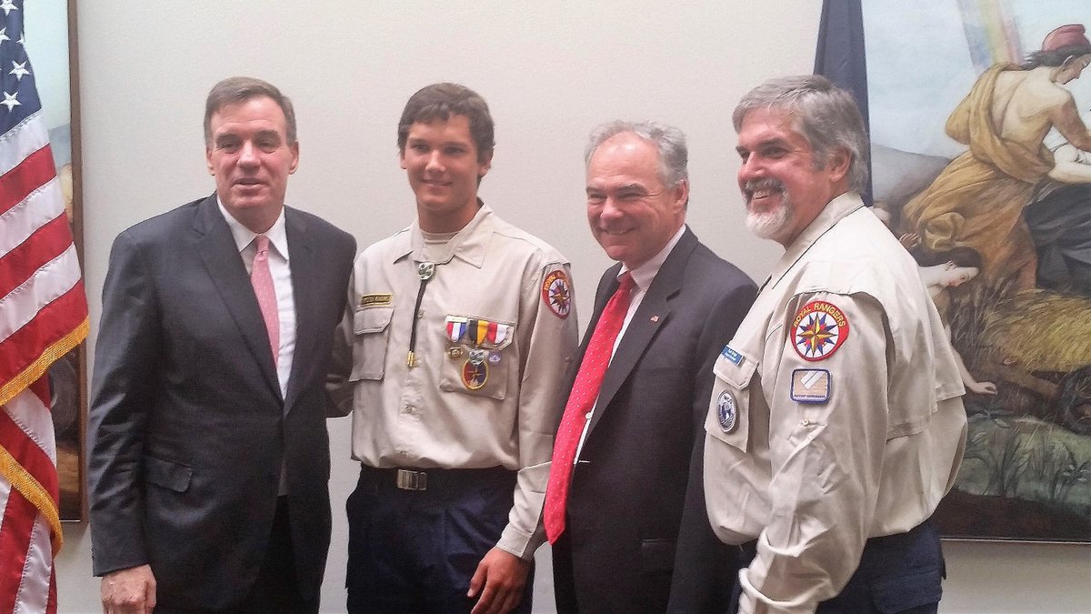 Congrats to Josh Spriggs for his Gold Medal of Achievement award in the Royal Rangers. Josh was recognized by @MarkWarner and @timkaine.pic.twitter.com/zYdpFKyKzK