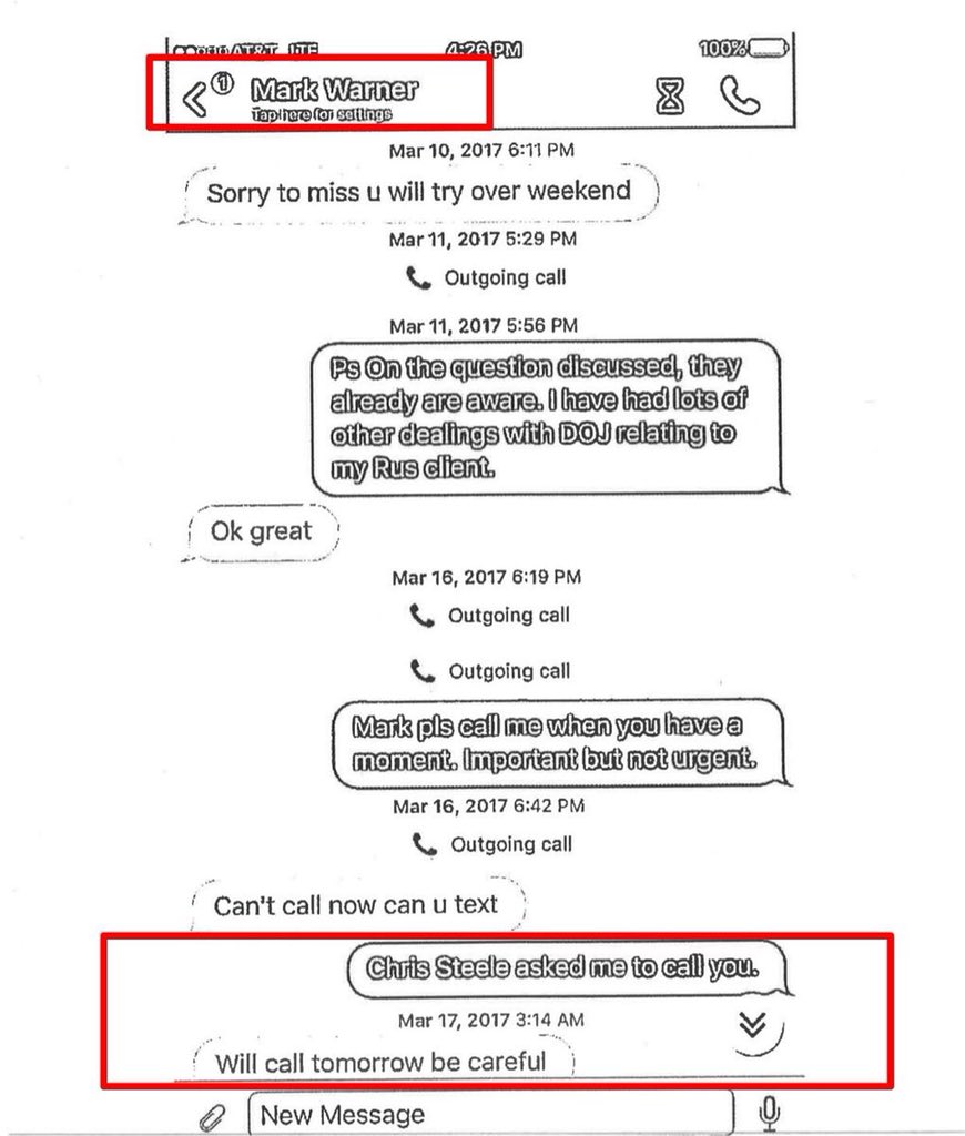 @MarkWarner that Chris Steele asked him to call. What kind of two bit charade is the Senate Intel Committee running these days? -
