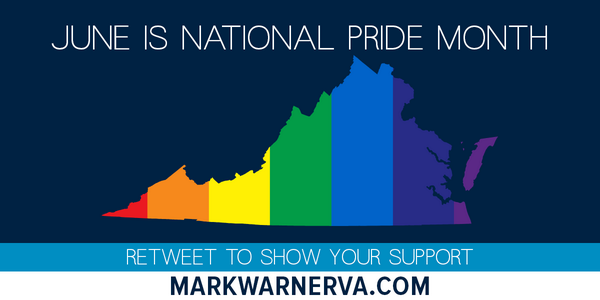 June is National Pride Month. Retweet to stand for equality for all Virginians and Americans.pic.twitter.com/tsDP5cPa0l