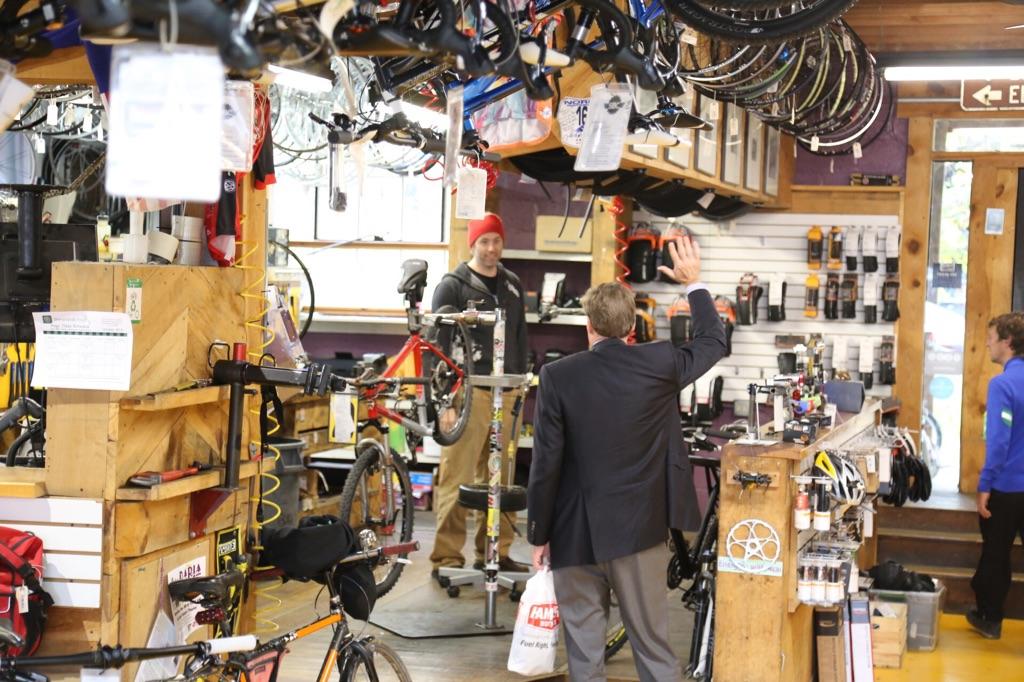 Had to stop by @ShenandoahBikes, my favorite bike shop in Harrisonburg. Off to our next event! #vasen #TeamWarnerpic.twitter.com/BYsd2FJFmo