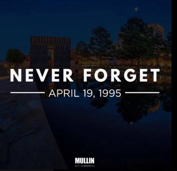 We will never forget 23 years ago when a senseless act of terror took place and 168 innocent people lost their lives. Today we remember those who lost their lives, and when Oklahoma came together as one. We will never forget.pic.twitter.com/lMbY1AVBJP