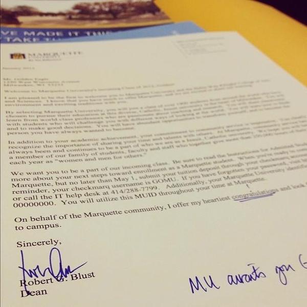 @MarquetteU @muadmissions The real question is... Should I be worried if I did NOT get a letter today??!