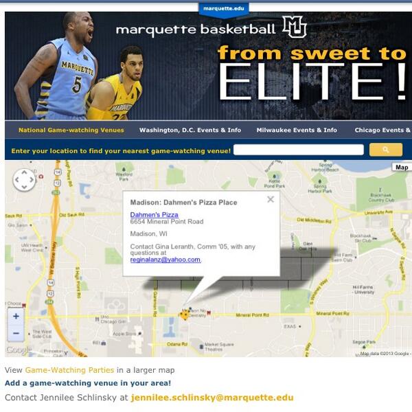 Hey @MarquetteU any viewing parties in Madison? #mubb