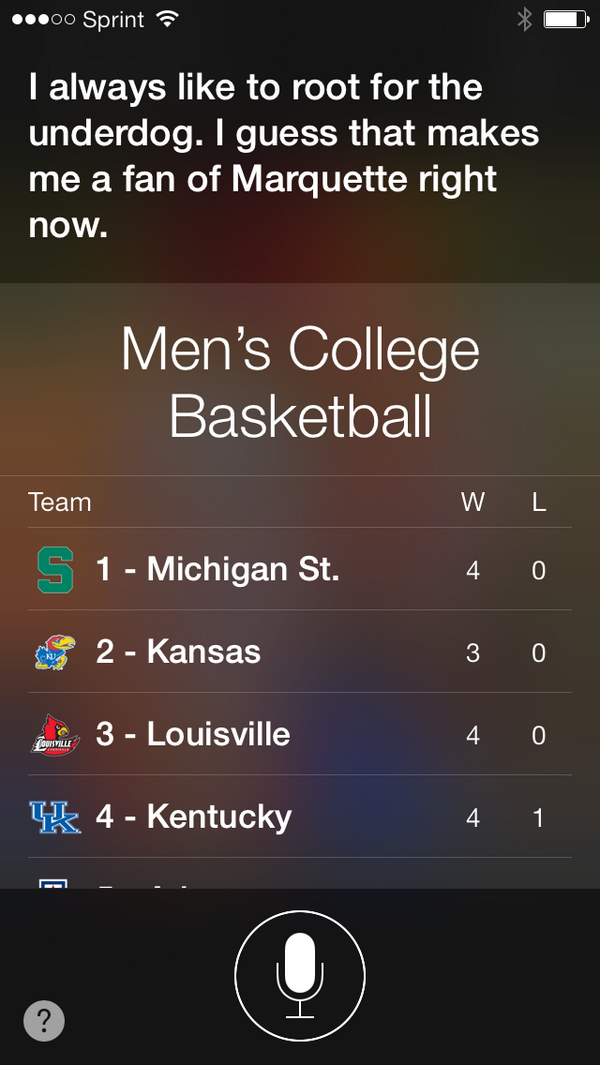 Siri knows what's up “@MarquetteU: Q: "Who's your favorite college basketball team?" #ThankYouSiri #mubb pic.twitter.com/DGFOR2SXpG”