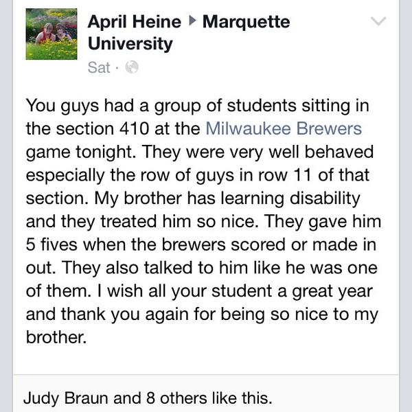 Good on you, #MarqU18. #BeTheDifference https://facebook.com/MarquetteU/posts/827641660602720 …pic.twitter.com/UONmVlQ7hk