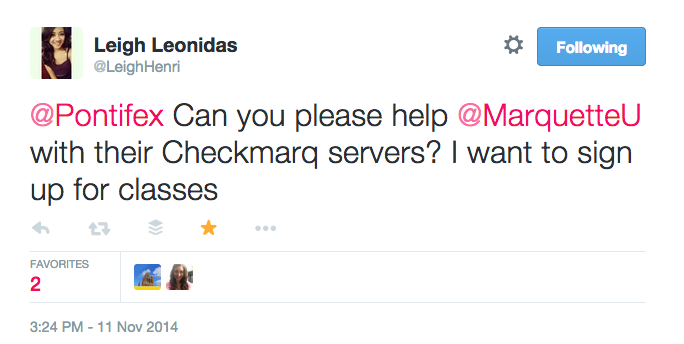 CheckMarq should be back by 4, per @MarquetteITS. Sorry for the inconvenience. @LeighHenri with the tweet of the day:pic.twitter.com/OTJOQsL6ee