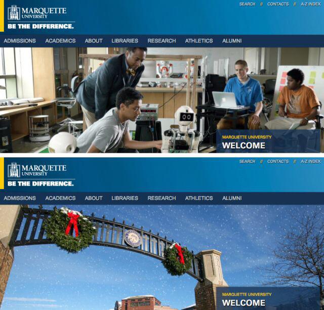Every http://Marquette.edu  homepage in 2014: http://marquetteu.tumblr.com/post/106805155070/marquette-university-home-page-2014 … via @myklnovakpic.twitter.com/e5CMzVFqu6