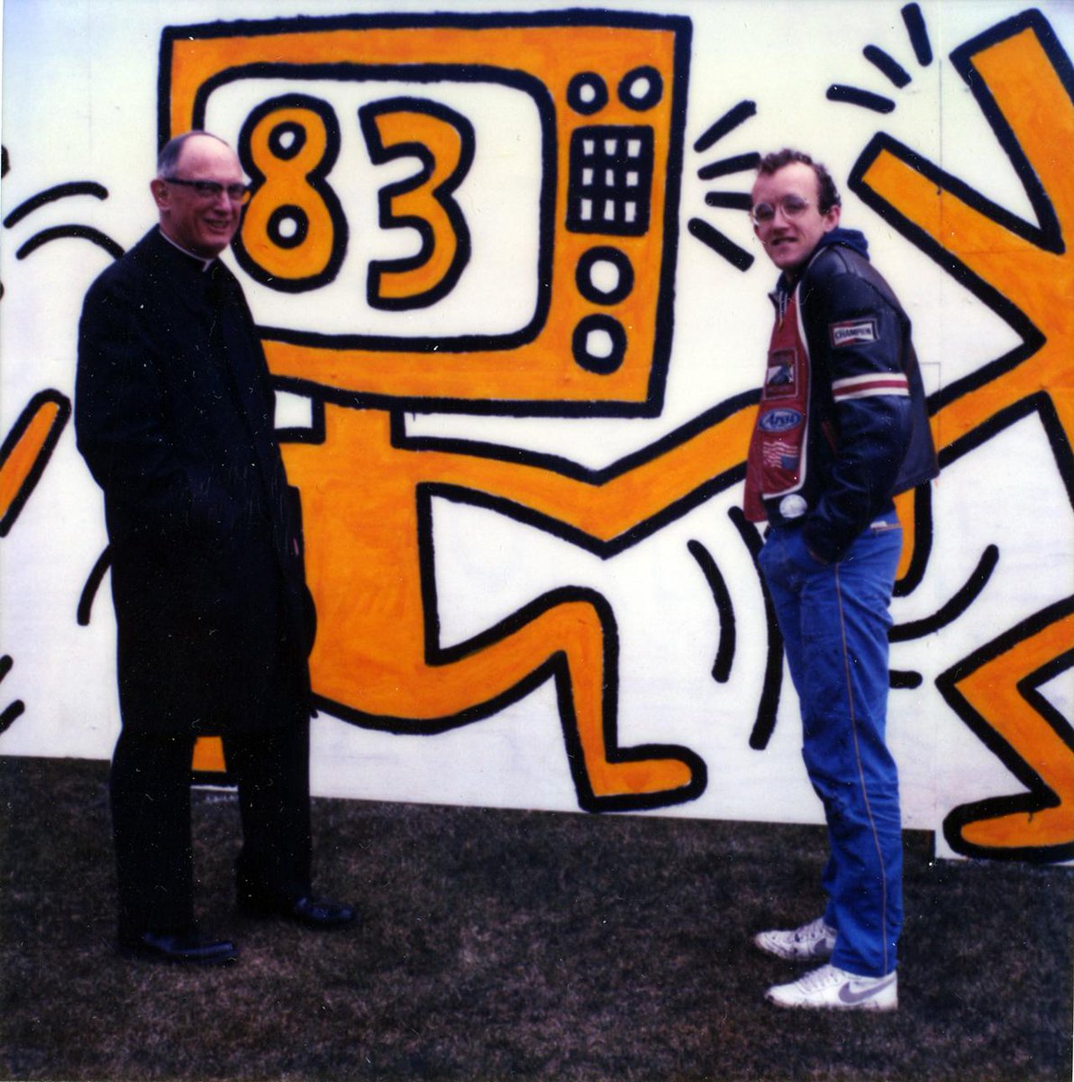Marquette President John P. Raynor, S.J., with New York graffiti artist Keith Haring, 1983: http://go.mu.edu/1KV7nBQ pic.twitter.com/cfLo9zQDl5