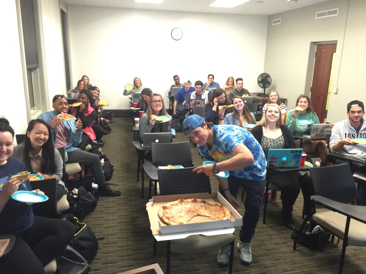 Pizza party in #ADPR4300 tonight to kick off our partnership with @zappos! #winning cc: @djenders @MarquetteUpic.twitter.com/XGfHxYitB8
