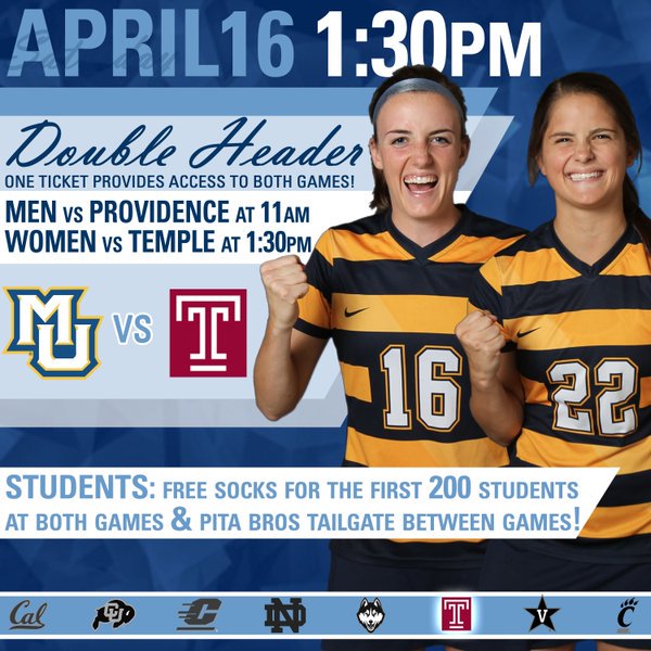 Who's up for the @MarquetteMLax @MarquetteWLax doubleheader tomorrow? Valley Fields, sunny + 60 degrees. Be there.pic.twitter.com/chVsLgLucy