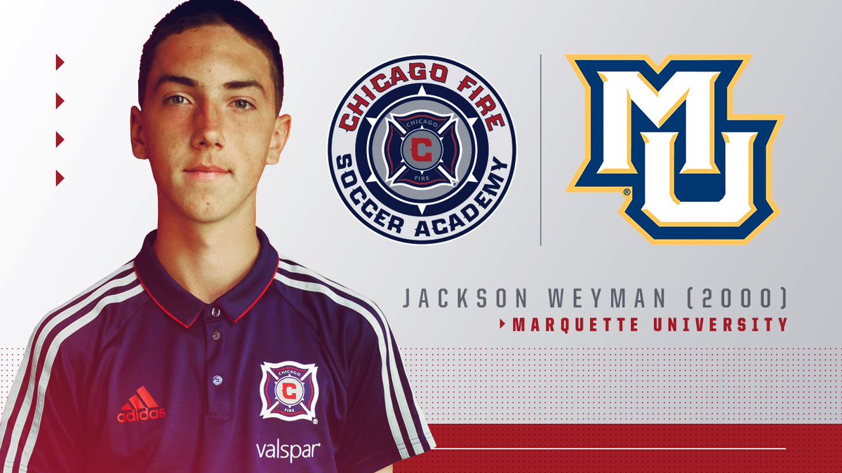 Congrats to @ChiFireAcademy player Jackson Weyman (1999) who recently committed to @marquettesoccer. After 4 successful seasons with the fire, the goalkeeper will continue his futbol education in @muathletics #cf97pic.twitter.com/GOljF0R4po