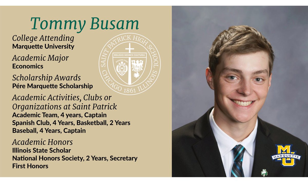 Each day from now until graduation we will share a Dear Saint Patrick letter from one of our seniors. First up: Tommy Busam who went to St. Paul of the Cross and is headed to @MarquetteU Read more: https://www.stpatrick.org/blog/dear-saint-patrick-tommy-busam-18/ … @MUAdmissions @SPShamrocks #Classof2018 #gorockspic.twitter.com/EhjaiksRRR
