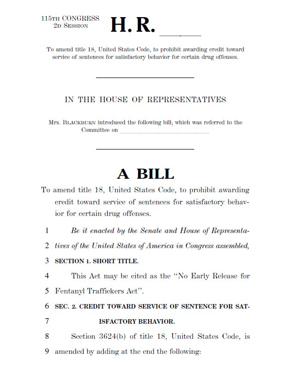 Blackburn - "No Early Release for Fentanyl Traffickers Act" Translation - Jail for black dealers, golden parachutes for super wealthy white big pharma execs act.