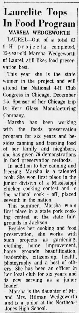 Good ol’ Marsha. Cooking pork as a teen, cooking pork in Congress a half century later. That’s a lot of pork!