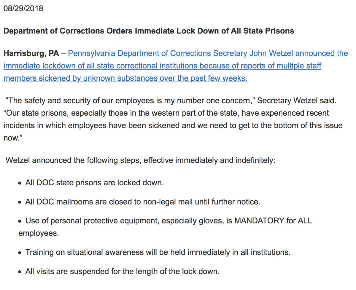 They’ve caught visitors in the past. Mainly through scanners and drug sniffing dogs. No mailroom employee has got sick. It’s all public information published for anyone to see. But apparently they are now saying mail is the “main source.” Wait til they see the drugs don’t stop.