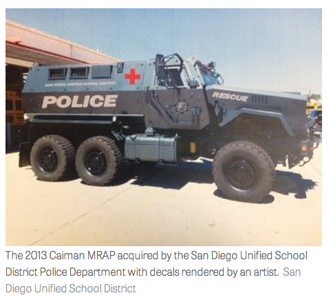 Over 20 advocacy groups urged the DoD to stop giving schools military hardware (like below) http://bit.ly/1u7Hhzy pic.twitter.com/XyoH96Pc5u