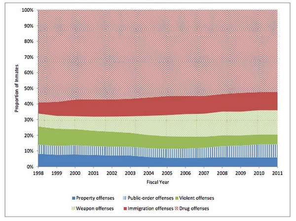 MT @MarshallProj: This is the prison population by type of crime. Light red is drug offenses. http://wapo.st/1xhusYv pic.twitter.com/jAuYXdMeAf