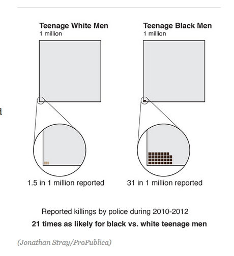 In recent years, black teens were 21X likelier to be shot by police, per @ProPublica: http://bit.ly/1xytLHz pic.twitter.com/RkBj75Rc4C