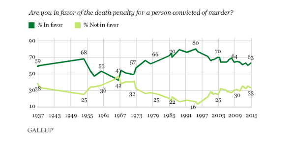 “@MarshallProj:Here is how Americans' support for the death penalty has changed pic.twitter.com/YuWWJzvdY9” It shows '60s and '70s as special ys