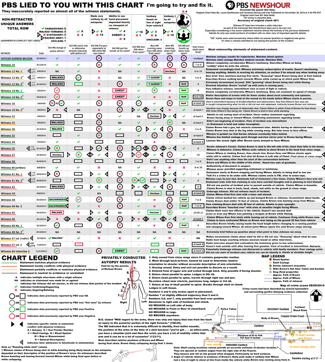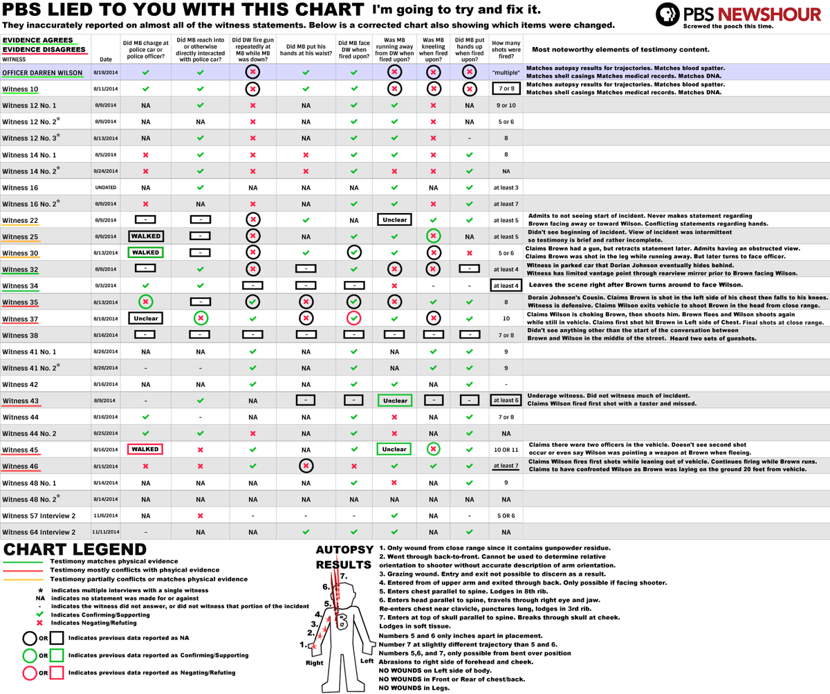 @MarshallProj @DebFeyerickCNN @NewsHour Dishonest chart. We already know that many "witnesses" l8r admitted they didn't see shooting AT ALL