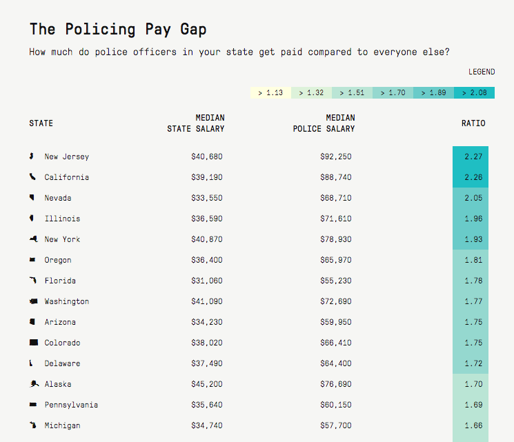 In 25 of 50 states, police are paid 150% or more of the median salary. http://bit.ly/1Jkeb8n pic.twitter.com/eZyNb3UOi9