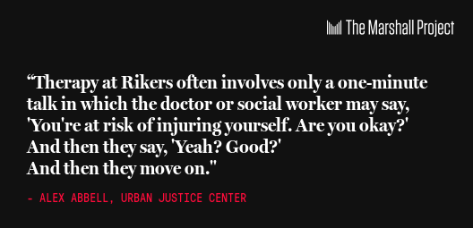 Alex Abbell of @UrbanJustice, on the lackluster mental health care at #Rikers: http://bit.ly/1RK1TZP  #ThisIsRikerspic.twitter.com/jxbXDQ6V6z