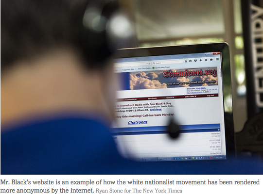 How the Internet has rendered the white supremacist movement more anonymous: http://nyti.ms/1ezrZSC pic.twitter.com/D77vS9vX77