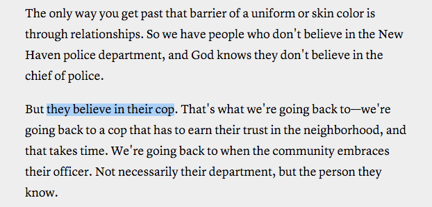 Dean Esserman, New Haven's chief of police, on how to earn community's trust: http://theatln.tc/1QQCAYW pic.twitter.com/W9Pf2xC3D3
