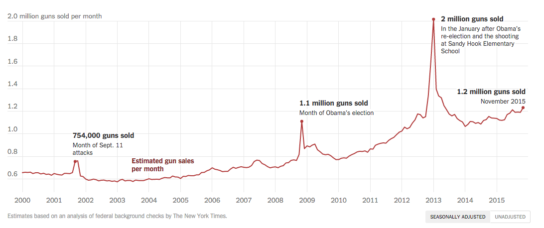Terrorism and calls for restrictions drive up guns sales, data shows. http://nyti.ms/1QhTosT pic.twitter.com/zoxNlOIyhJ