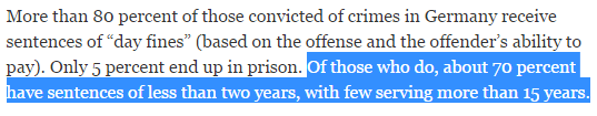Like, what specific things merit fines in Germany but prison time in US? That'd be useful to know.