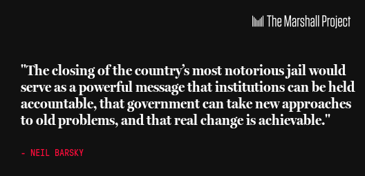 "Want to fix Rikers? Close it." Our founder @nsbarsky to @deBlasioNYC last year: https://www.themarshallproject.org/2015/07/17/mayor-de-blasio-tear-down-this-jail#.Db94Ps4lc …pic.twitter.com/hoB524pOcE