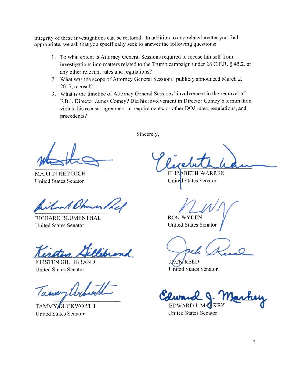 Thank you to each of the eleven Senators demanding an investigation of AG Sessions on the firing of James Comey!https://twitter.com/MartinHeinrich/status/864850301072920577 …