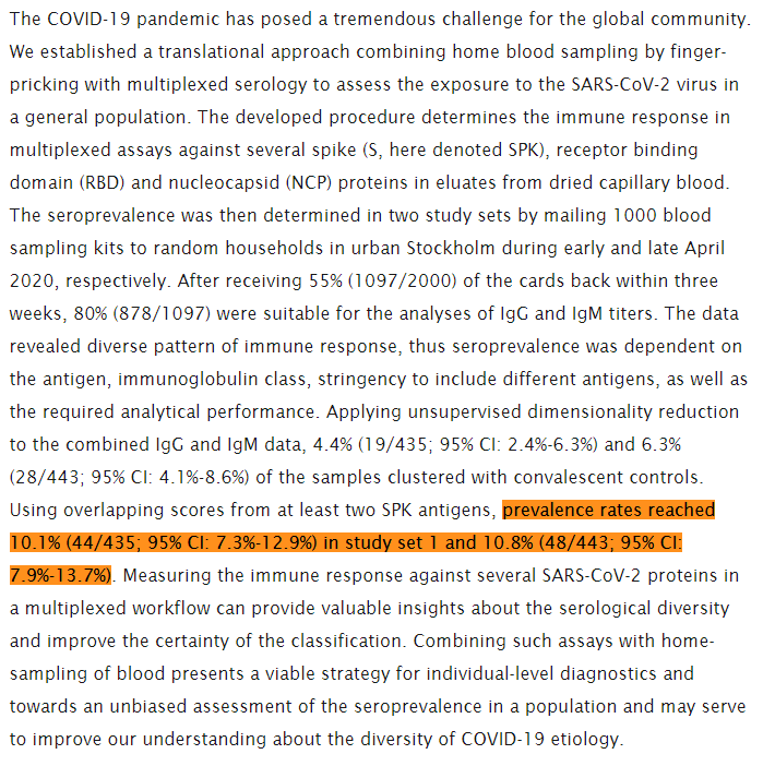 Re: "Around 1/3 of ppl in Stockholm has now had COVID-19" Just putting this here for the sake of posterity: https://www.kth.se/en/aktuellt/nyheter/10-procent-av-stockholmarna-smittade-1.980727 … Seroprevalence was <12% in both April and May: https://www.medrxiv.org/content/10.1101/2020.07.01.20143966v1.full …pic.twitter.com/S5EWkBYx9J