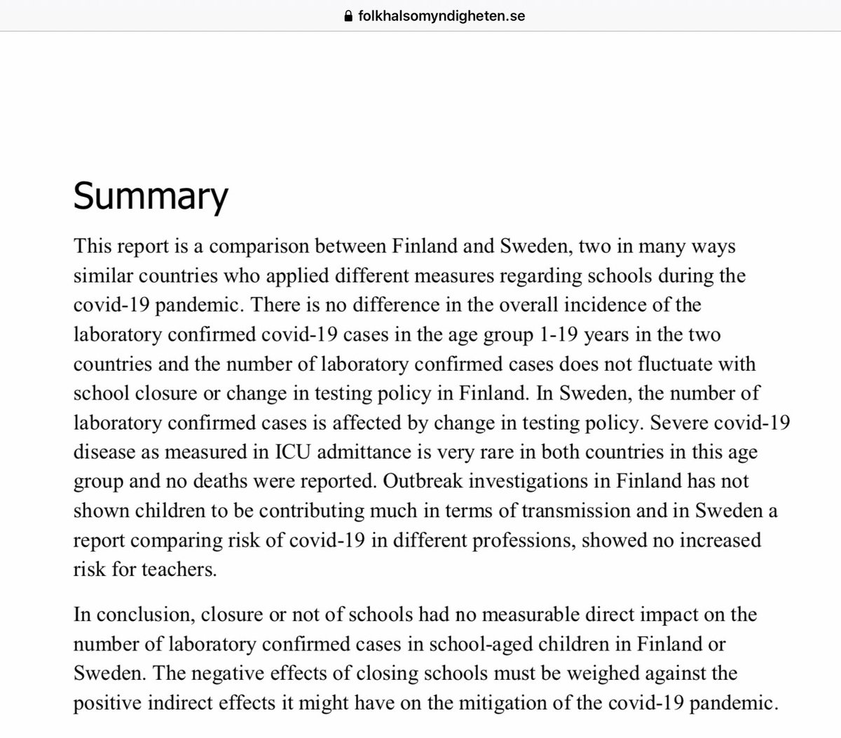 You are quite right Jon. Sweden never closed day-care or primary/middle schools, with zero #COVID19 deaths among 1.8 million kids ages 1-15. Moreover, teachers have no excess risk compared to other professions. https://folkhalsomyndigheten.se/contentassets/c1b78bffbfde4a7899eb0d8ffdb57b09/covid-19-school-aged-children.pdf …