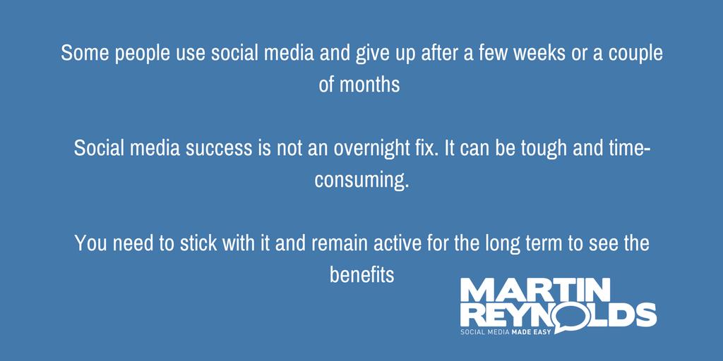 #SocialMedia success is not an overnight fix. It can be tough and time-consuming. You need to stick with it and remain active for the long term to see the benefitspic.twitter.com/Zz59aH6o1D