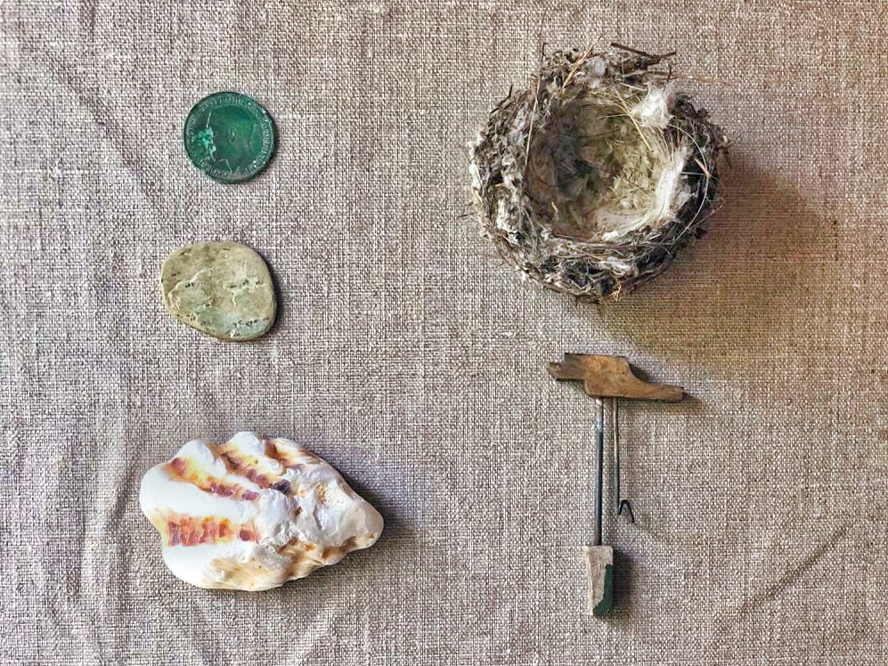 Four items that sit on my desk: 1. A chunk of Malachite from the Yorkshire Dales 2. Amber from Shingle Street beach 3. Sea glass from the front line of coastal erosion at Covehithe 4. Haematite from my crossing of the Pyrenees, found in Andorra