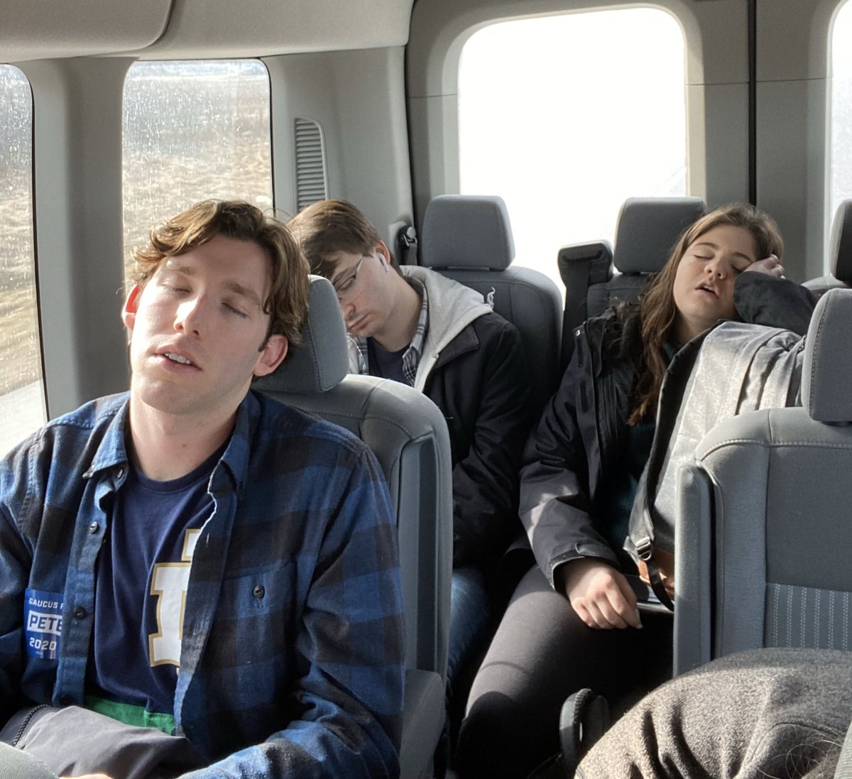 #StudentsforPete taking a nap after a big morning of last-day canvassing for@PeteButtigieg ! On our way back to Notre Dame in time to watch the#IowaCaucuses (and for Tuesday classes!)