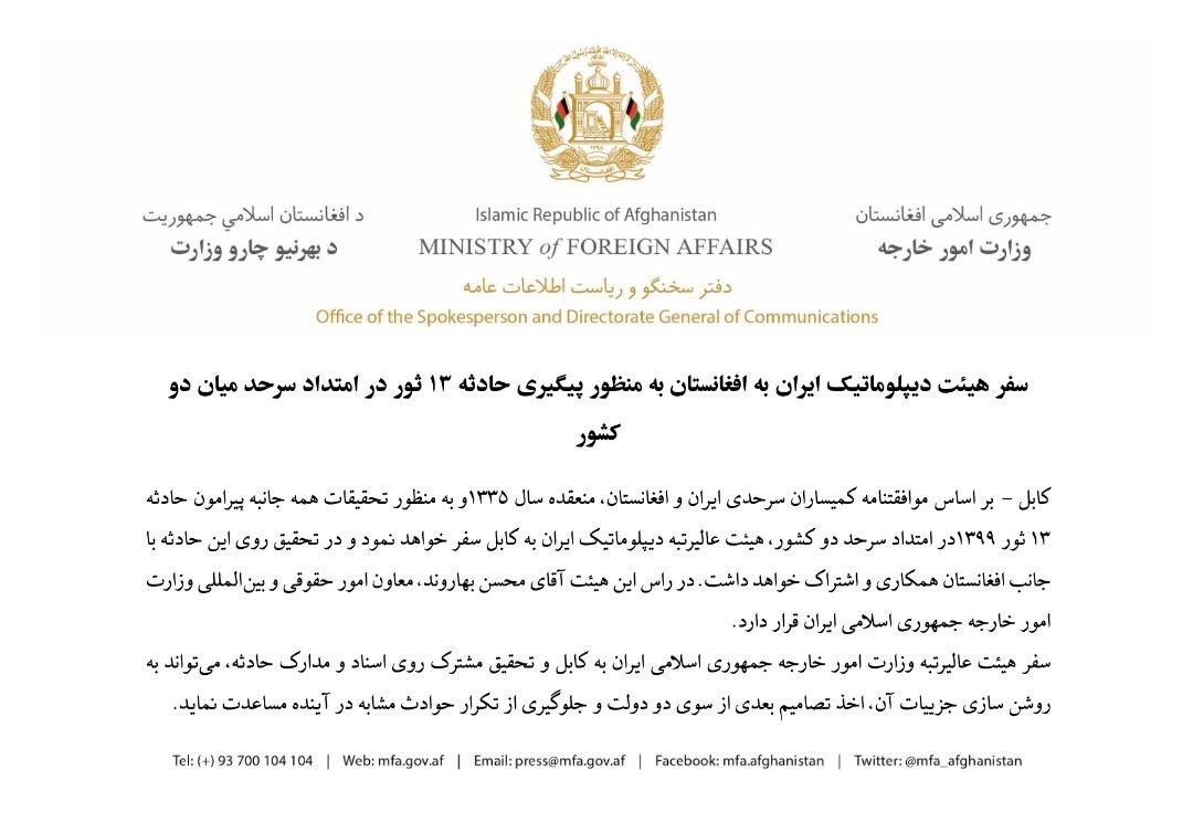 این هم نتیجه ی پیگیری ها، امیدوارم معاون وزارت خارجه ایران با مدارک مشخصی که وجود دارد جنایت پیش آمده را بپذیرد و مسئولانه عمل کند. معاون وزارت خارجه ایران در پیوند به جنایت مرزبانان ایران راهی افغانستان می شود.pic.twitter.com/sihbMe41eG